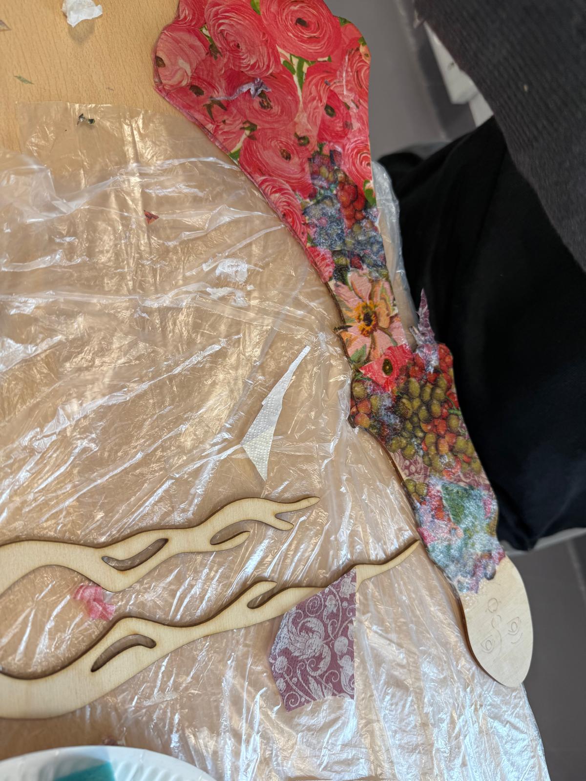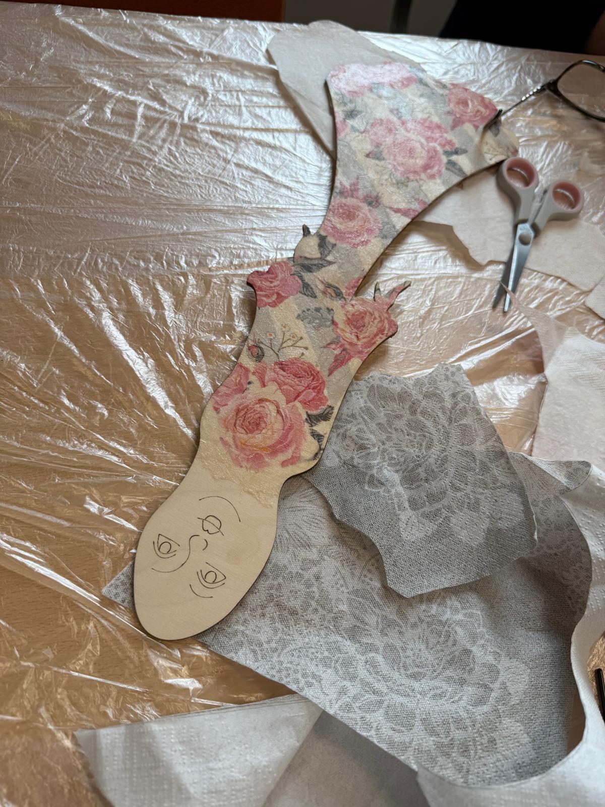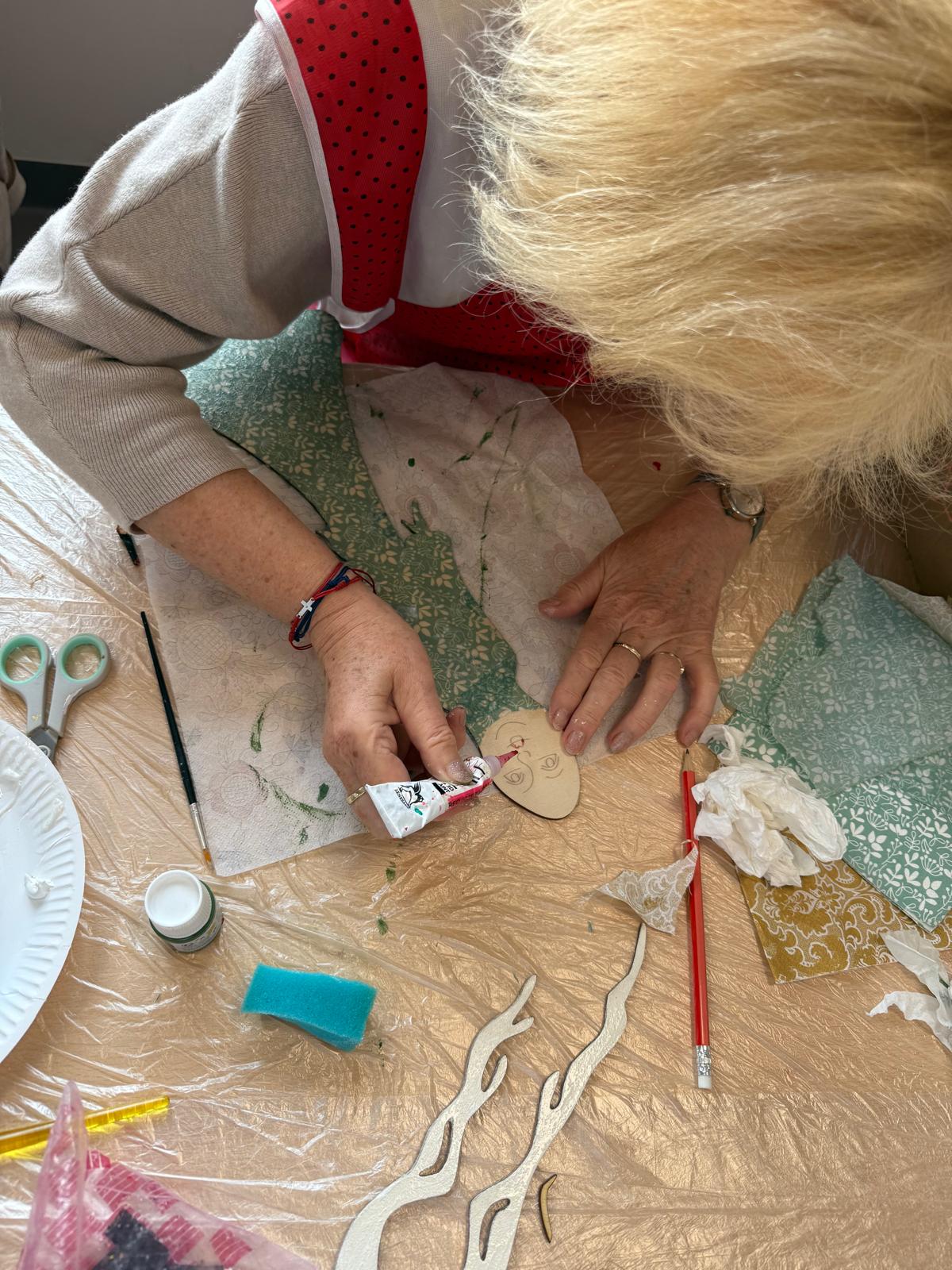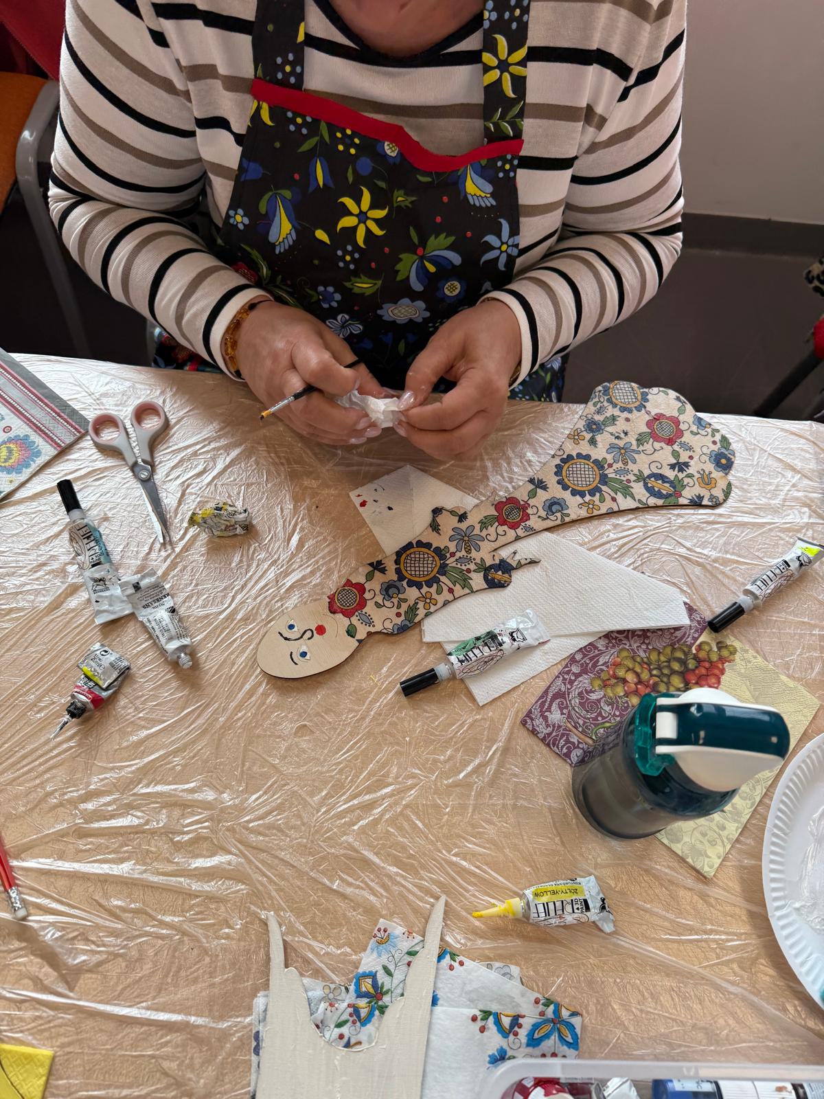 Seniorzy podzieleni na dwie grupy (10:00 – 13:00 oraz 13:00 – 16:00) pracują techniką decoupage – powstają piękne anioły.