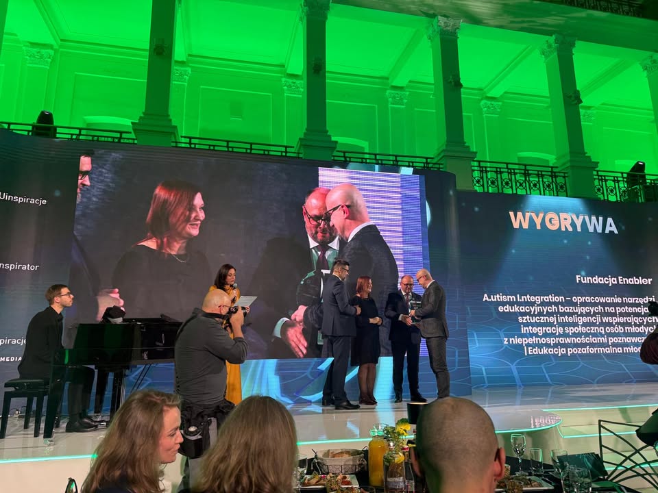 Nasz projekt „A.utism I.ntegration – opracowanie narzędzi edukacyjnych bazujących na potencjale sztucznej inteligencji wspierających integrację społeczną osób młodych z niepełnosprawnościami poznawczymi” zwyciężył w kategorii Umiejętności cyfrowe podczas Gali EDUinspiracje 2025 Fundacja Rozwoju Systemu Edukacji.