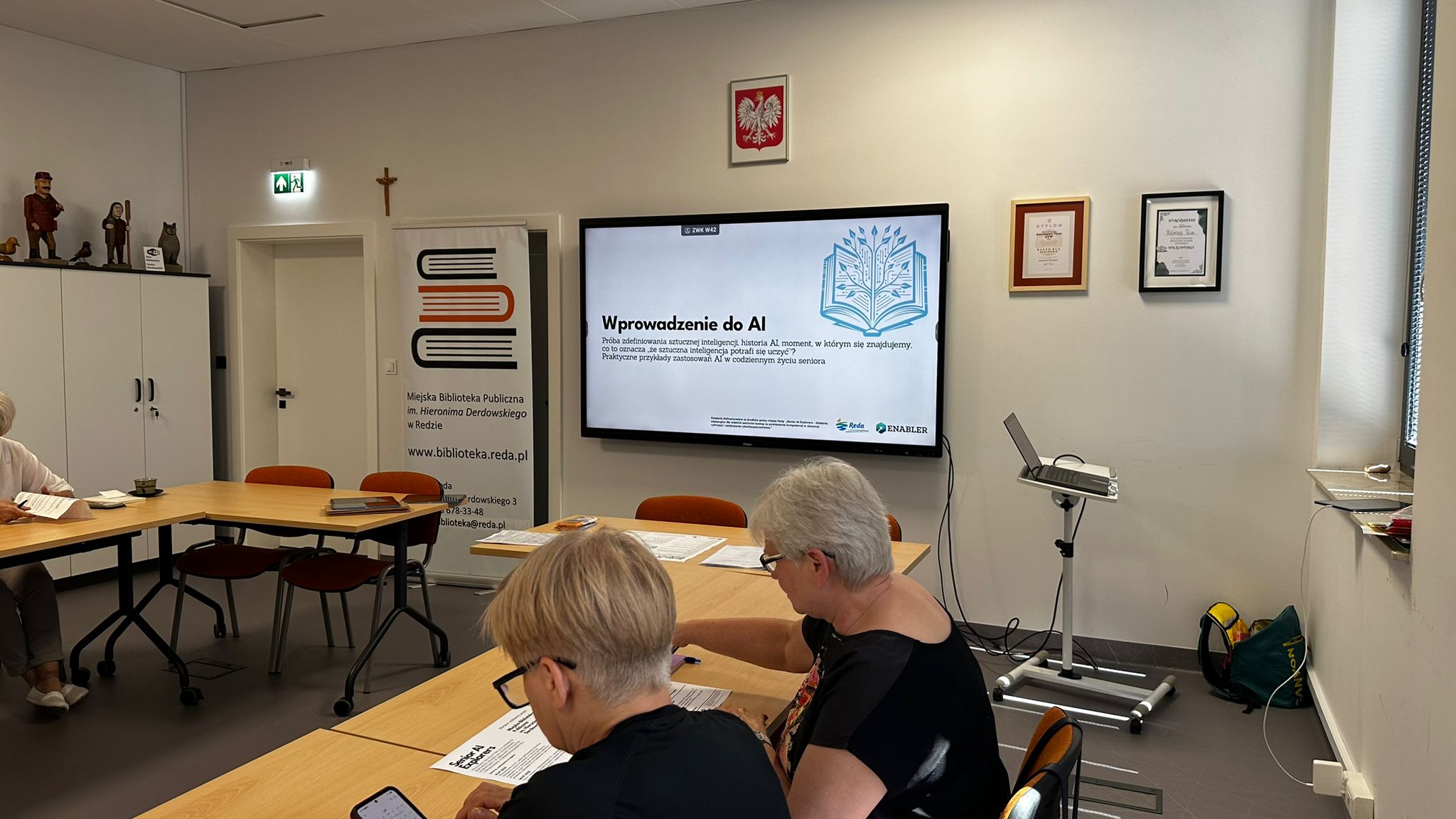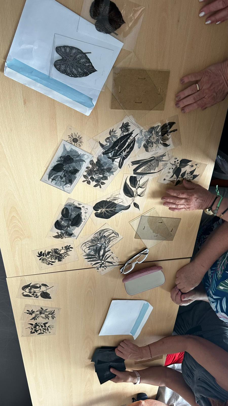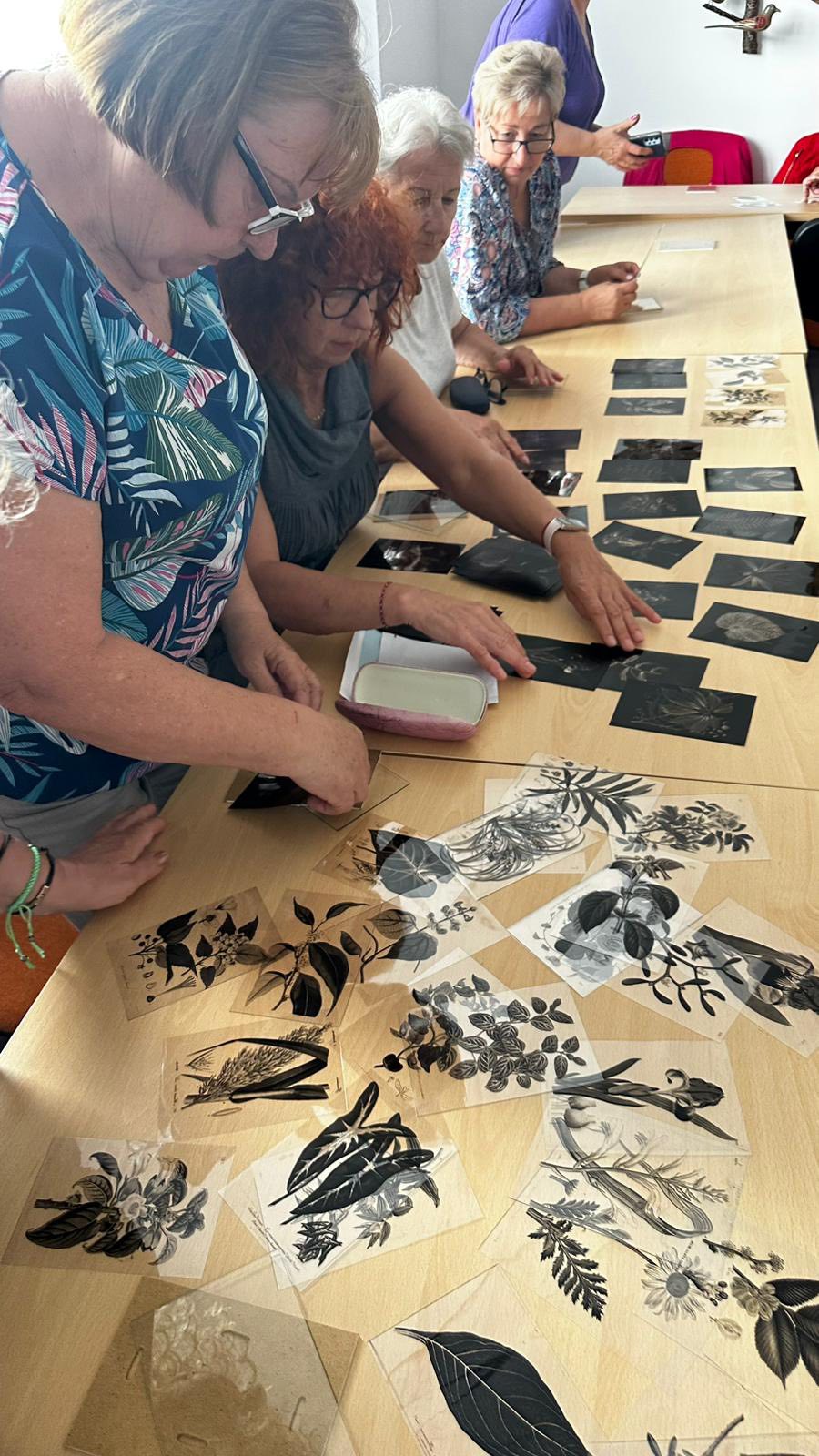 W Miejskiej Bibliotece Publicznej w Redzie seniorzy z grupy pierwszej właśnie pracują nad własnymi odbitkami - poznając niezwykle ciekawą technikę cyjanotypii.
