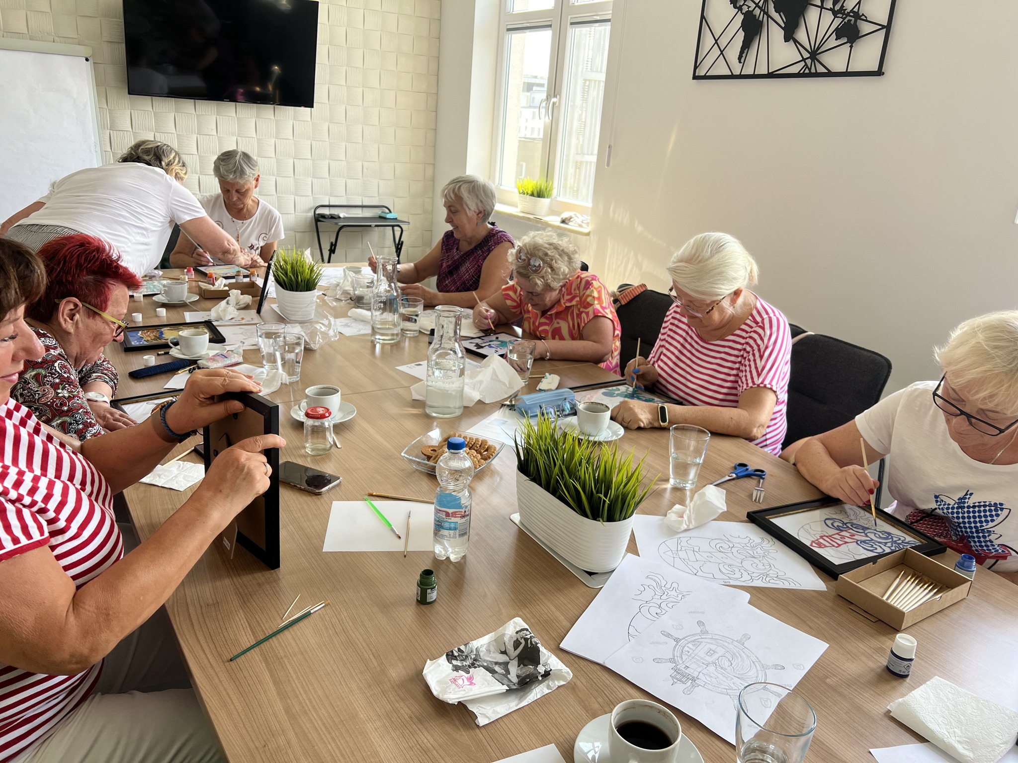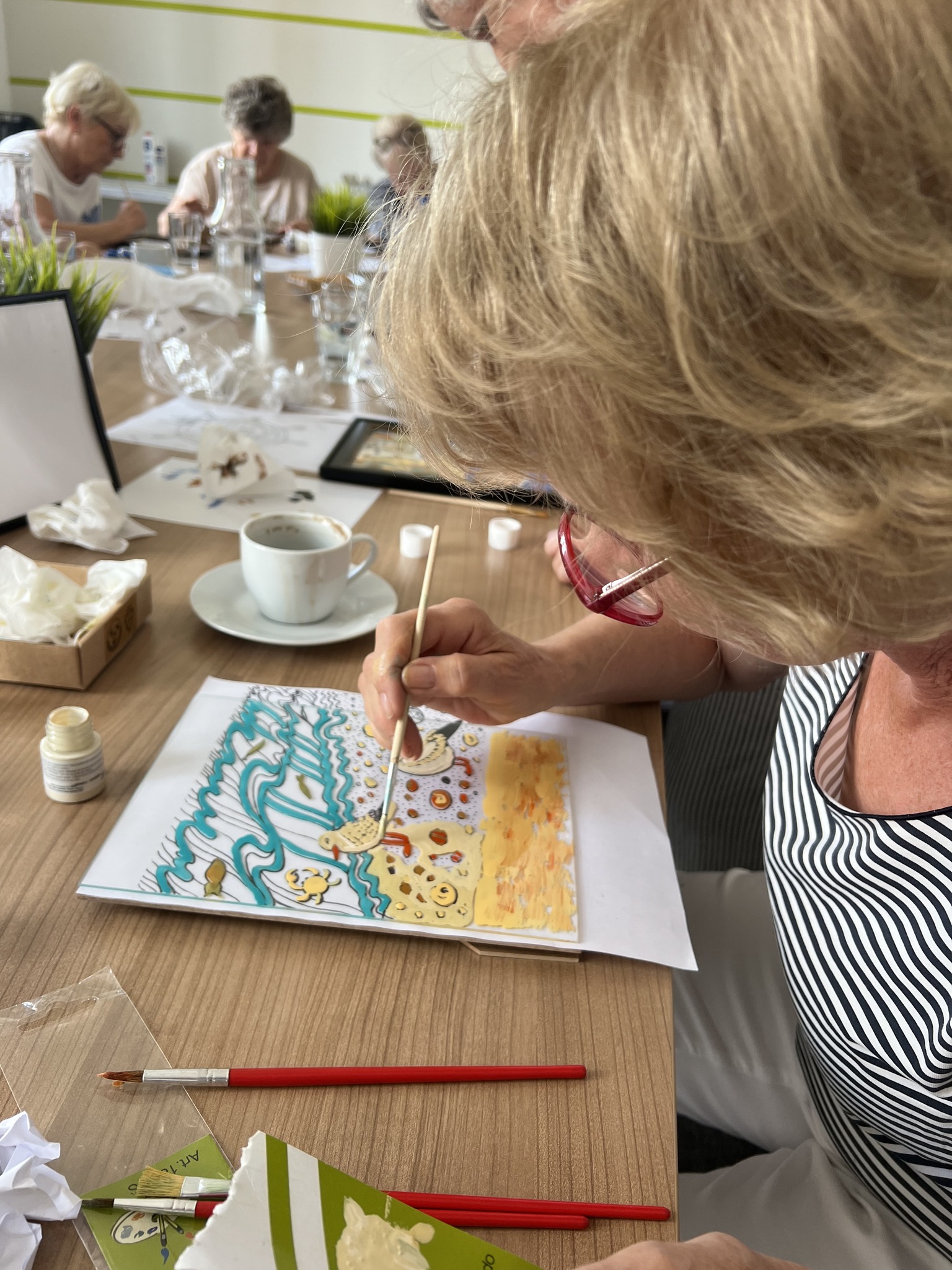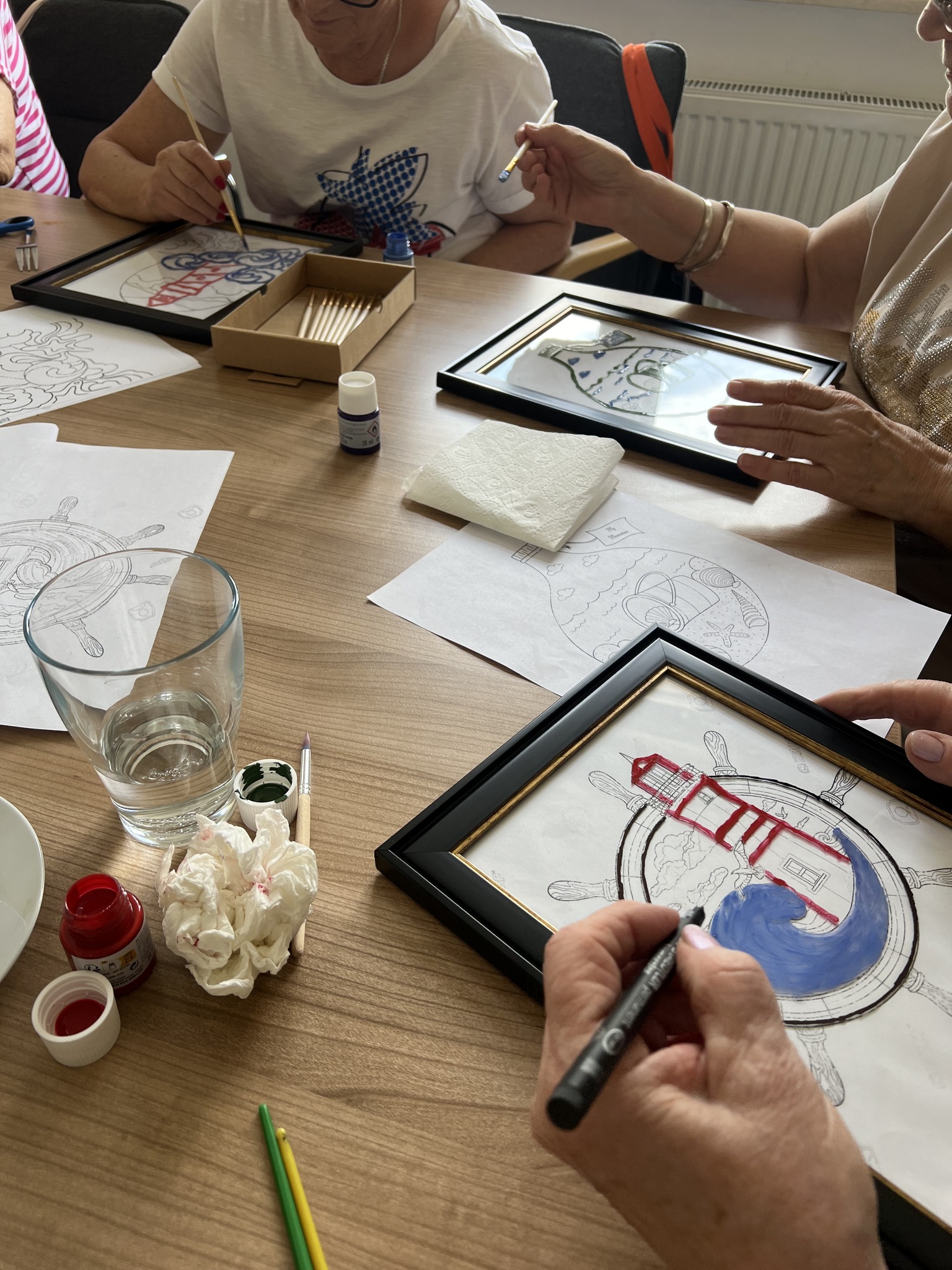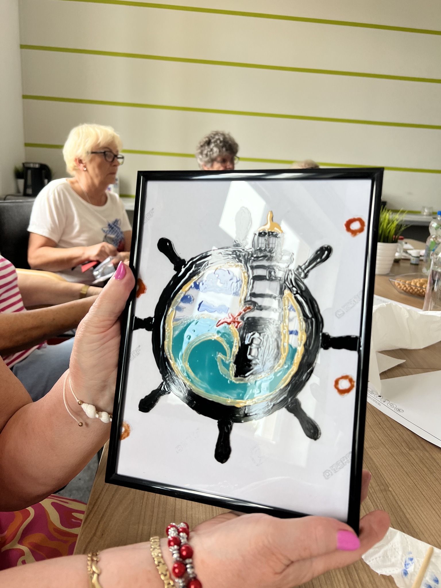Kolejne warsztaty plastyczne o tematyce marynistycznej za nami. Dzisiaj grupa seniorek malowała na szkle. Powstały ciekawe, czasem abstrakcyjne morskie kompozycje. Efekty na zdjęciach!