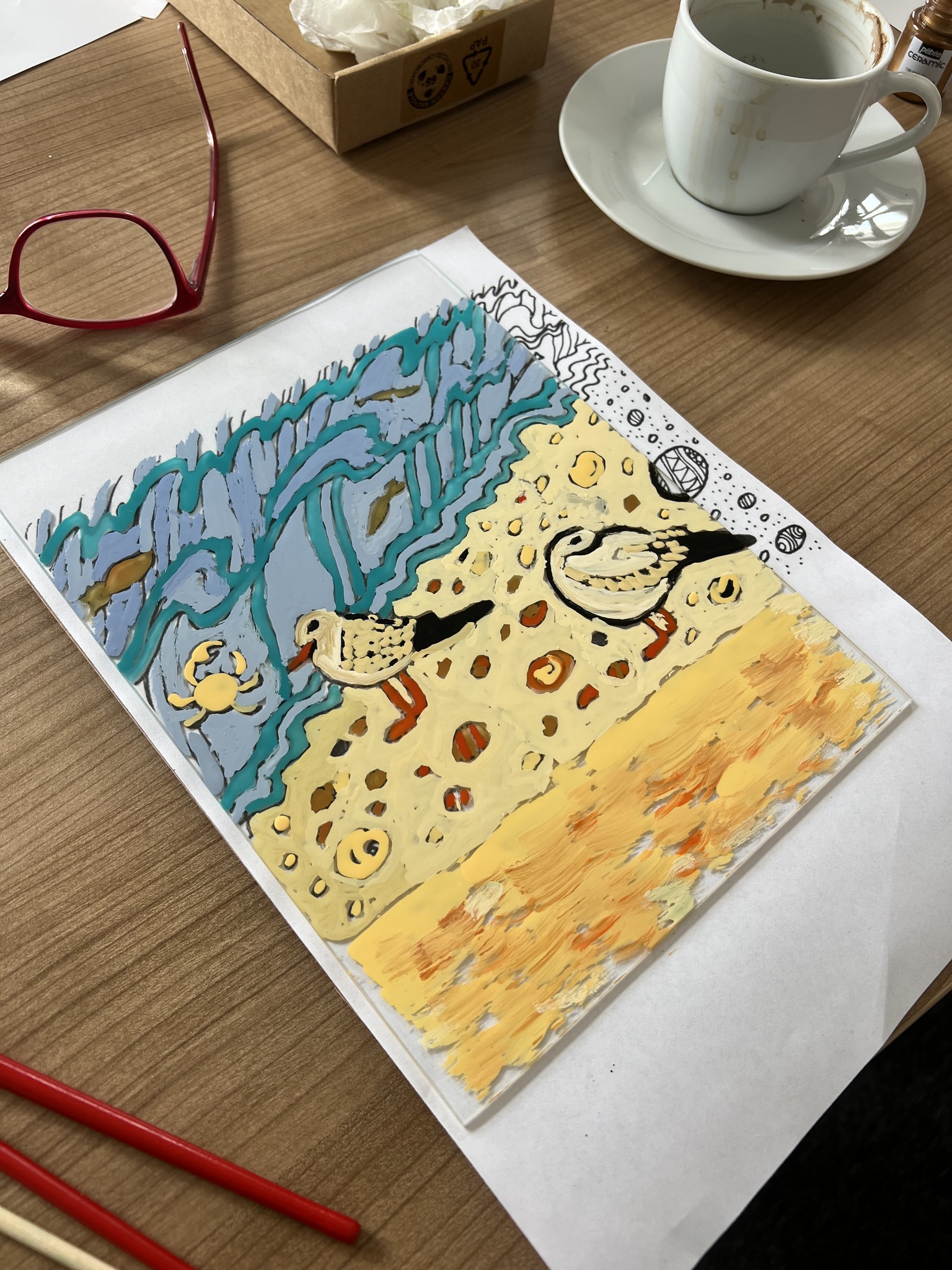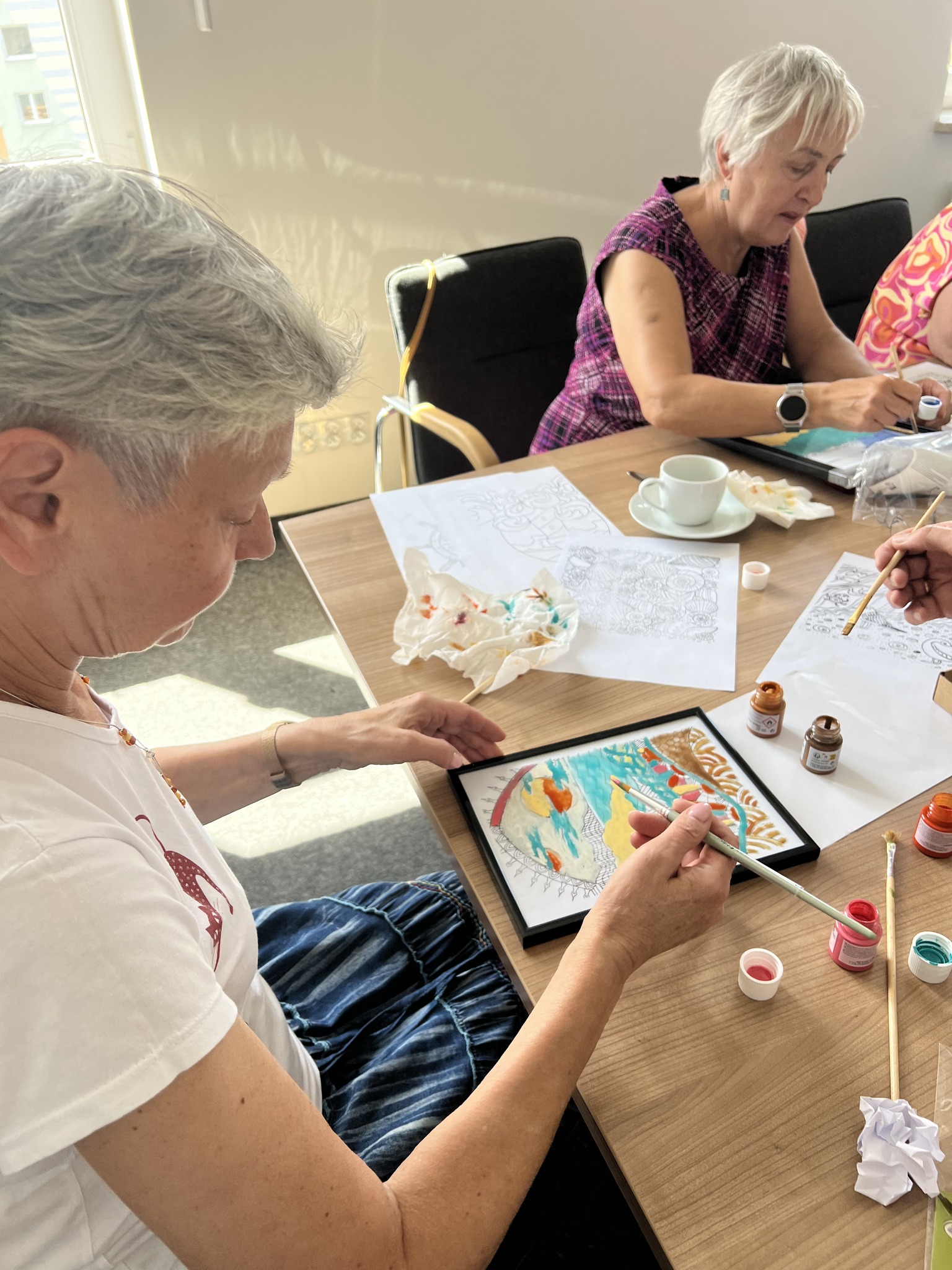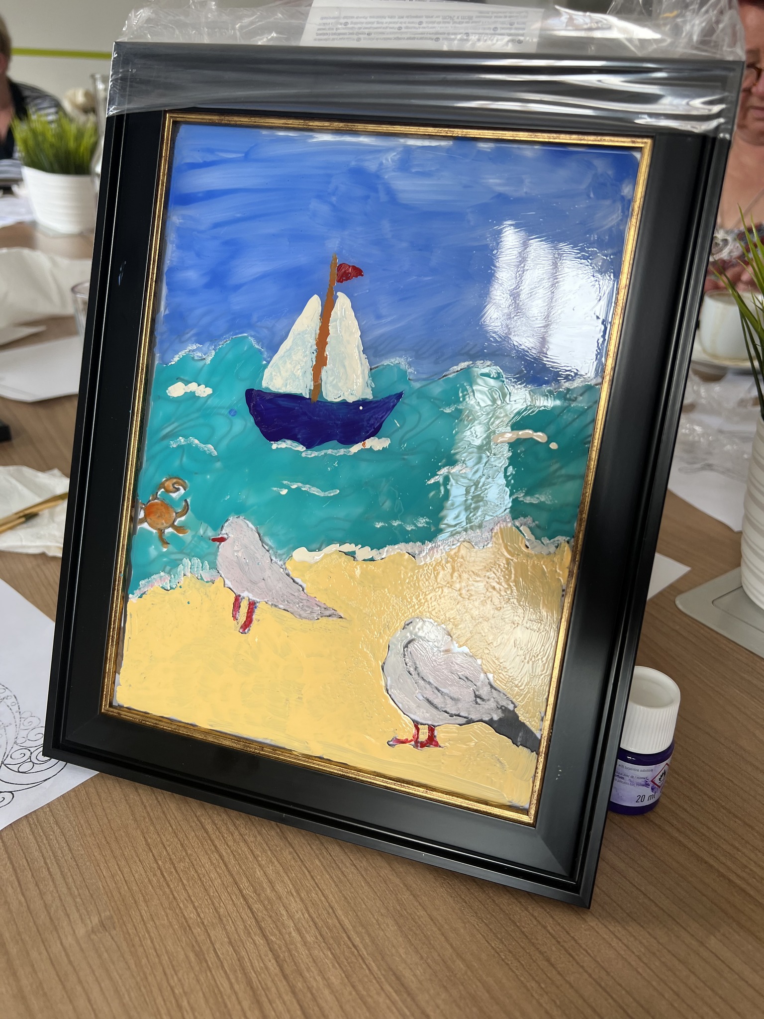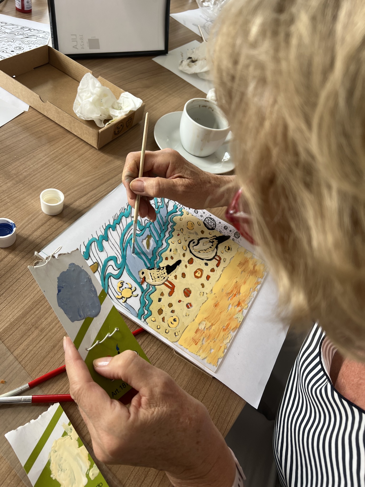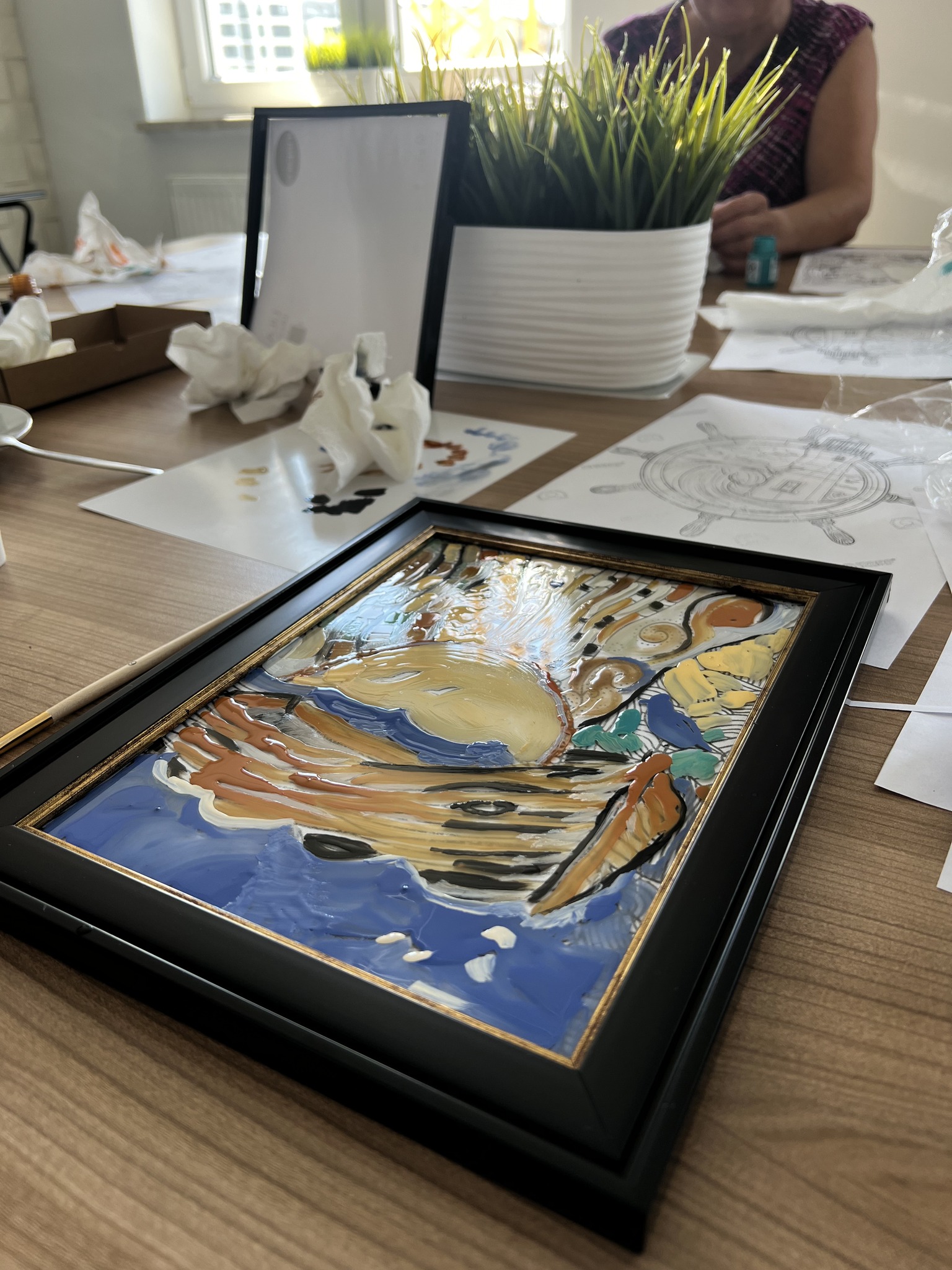 Kolejne warsztaty plastyczne o tematyce marynistycznej za nami. Dzisiaj grupa seniorek malowała na szkle. Powstały ciekawe, czasem abstrakcyjne morskie kompozycje. Efekty na zdjęciach!