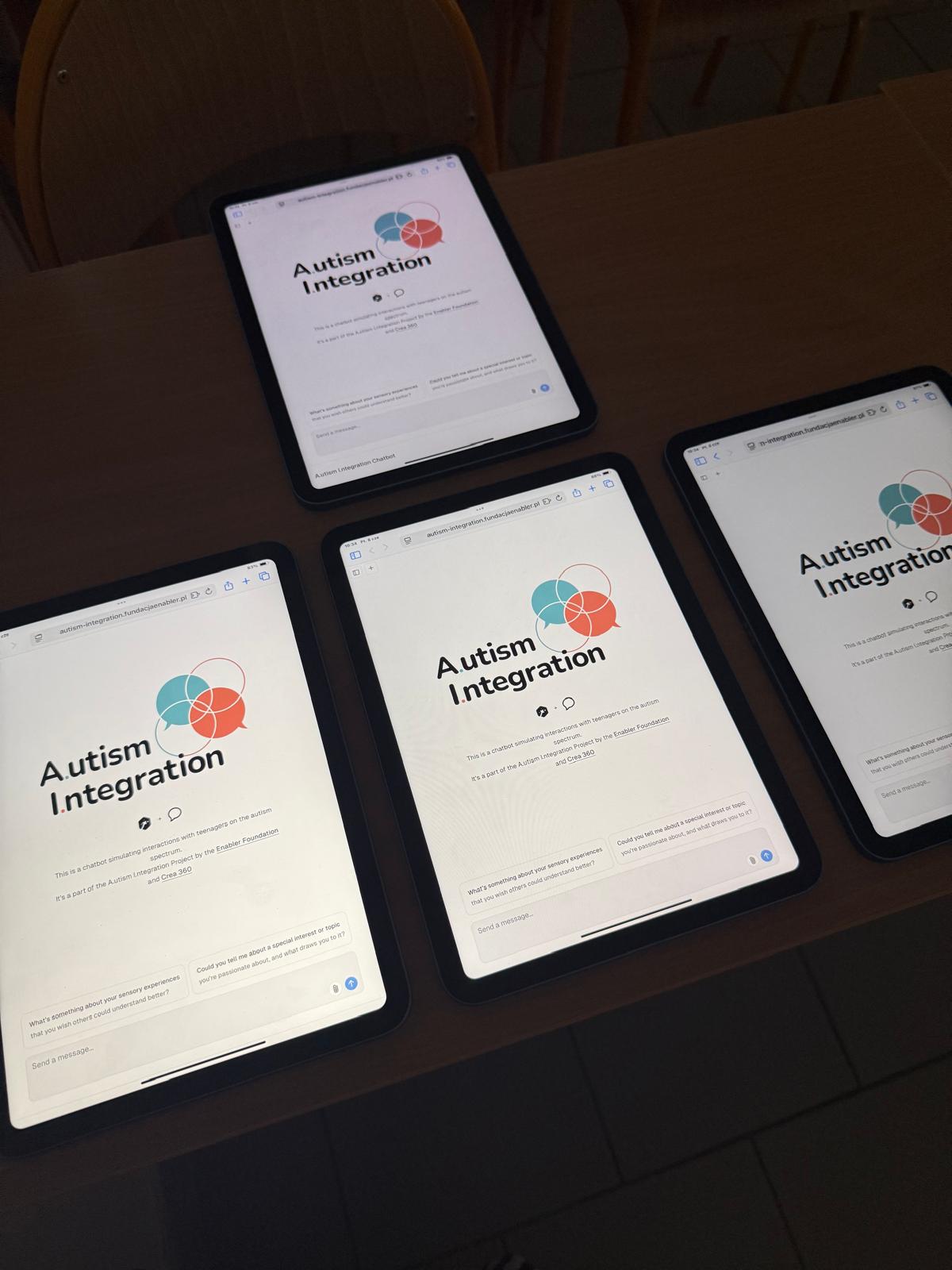 W ramach projektu opracowaliśmy ChatBota symulującego rozmowę z nastolatkiem w spektrum autyzmu – pracowaliśmy nad nim razem z hiszpańskim partnerem Crea360, a teraz przechodzimy do testów w postaci warsztatów z nastolatkami.