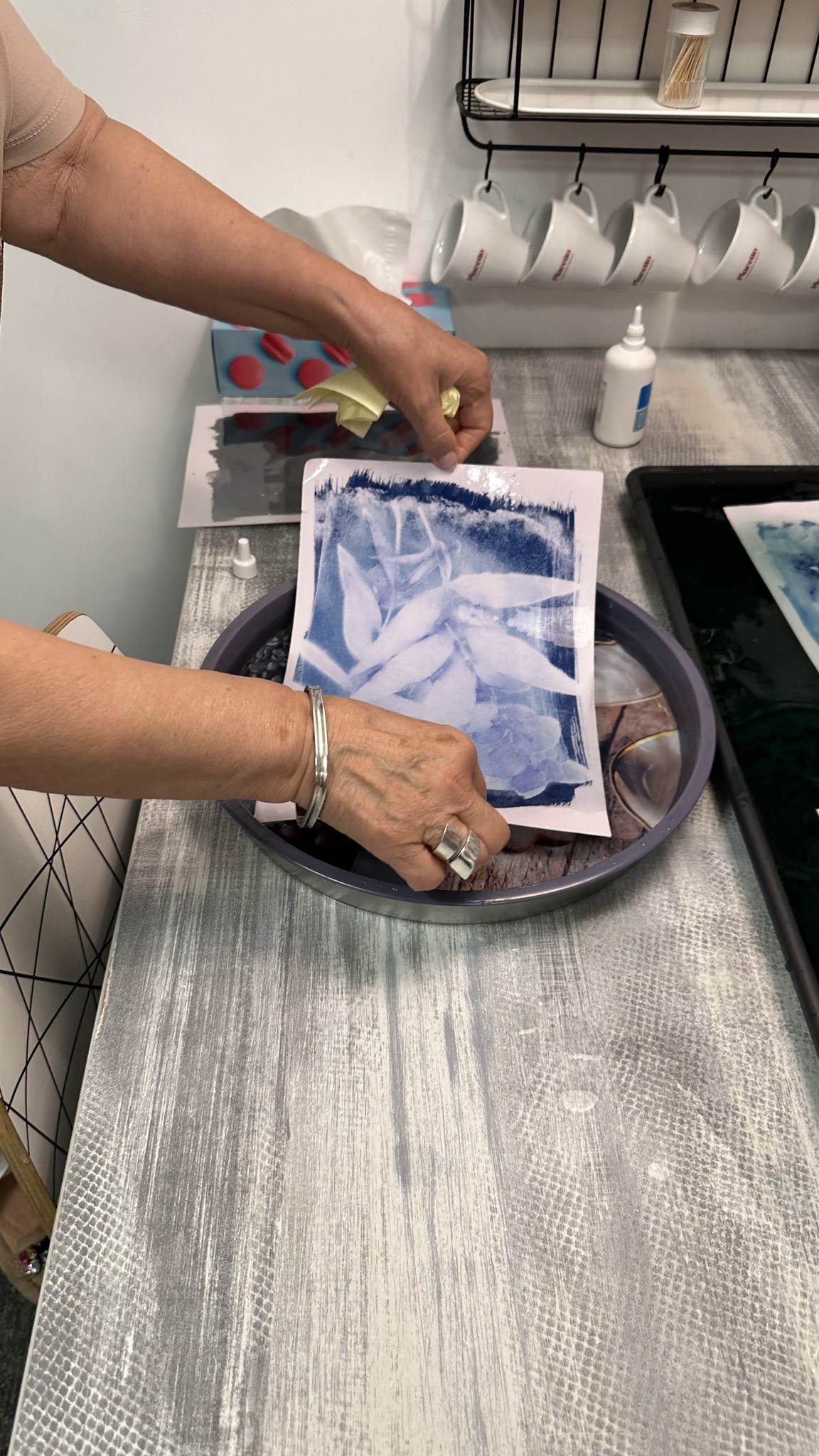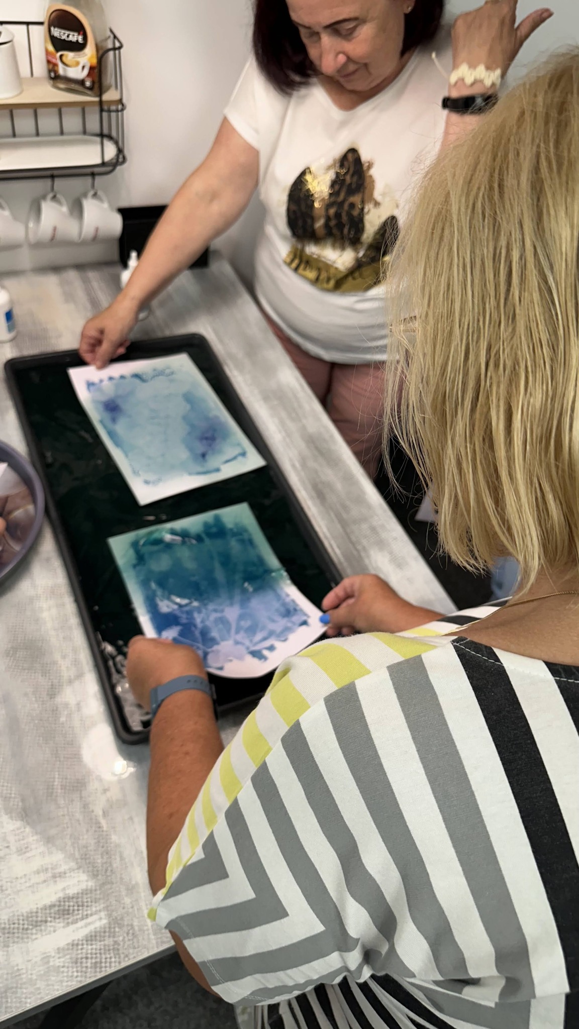 Na ostatnich zajęciach zapoznaliśmy Seniorów z Gdyni z nową techniką arytystyczną - cyjanotypią.